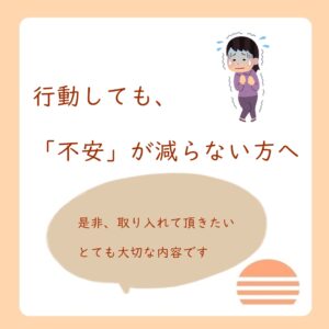 「行動をしても、不安が減らない方への対処法」について、簡単に書かせて頂きました。前回、不安を減らす方法として、その対策に…